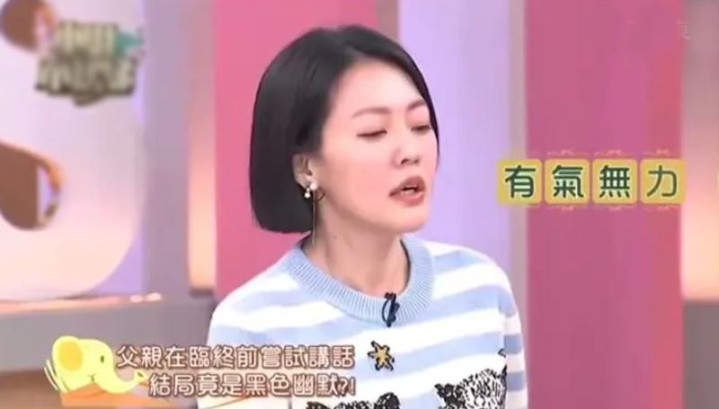 泪中带笑的是,在生命尾端时,最享受推他到医院的花园陪着抽两根烟,尽量让他做想做的事情。临终大家轮流俯身听他说了五六遍遗言,没有一个人听得懂,既成遗憾又成笑料。小S认为爸爸在说爱她们,说不准哪里留了巨额遗产,S妈调侃应该想最后来一杯,不给留下债务就感恩戴德了。
